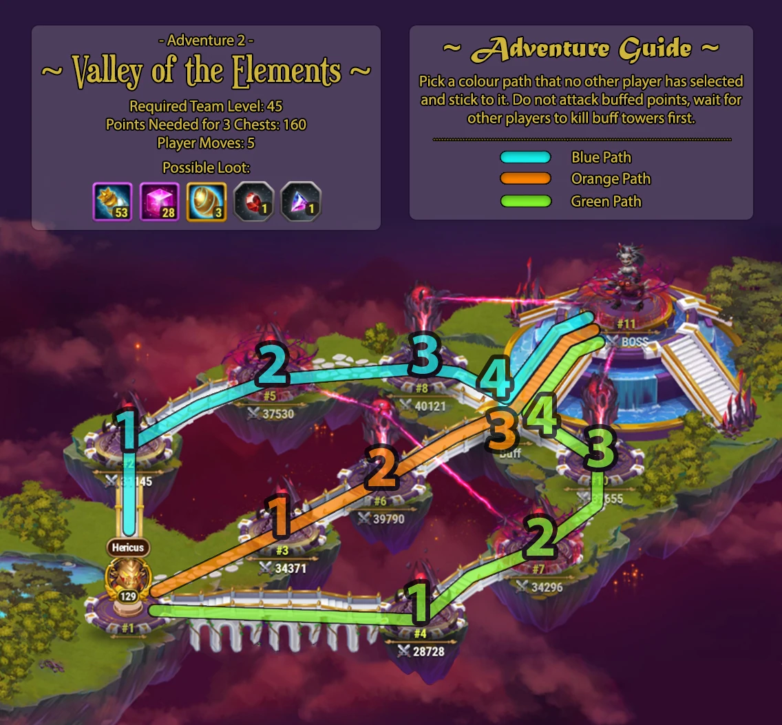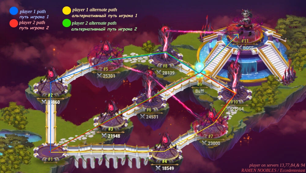 Either everyone takes one path and attacks the Boss or player 1 takes a roundtrip clearing four nodes leaving player 2 three nodes and the Boss.