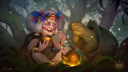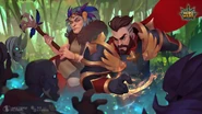 “Did you see how well the Foremother's Oath just worked? Kid just ran right off to give that demon what-for!” “Martha, get down!” exclaimed the tortoise, halting her movement with all four legs and dropping to her belly. Several huge boomerangs made of bone flew right over their heads like a hurricane. Their actual targets were the orcs following the elderly ladies, shouting and jeering. Martha turned around to face the master of the boomerangs. “Look at that, that’s Jhu himself! It’s been a while since you visited our woods!” she yelled excitedly, pointing her finger at the Guardian. Jhu leaped forward, landing between the women and the foes. His boomerangs shredded his enemies while the spirits of his ancestors healed his wounds. But a deep, nasty cut he received weakened him, slowing his attacks. The orcs advanced, and the Guardian found it all too difficult to keep holding the line. “How about a cup of tea, Josephine?” Martha suddenly asked. “Why ever not, my friend!” replied the tortoise in the same polite manner. “Let me brew some for us.” “Those old ladies have lost their minds.” whispered Jhu, barely opening his mouth. Suddenly, an odd pyramid of cups and teapots erupted just beside the troll. The entire structure boiled over, spewing a multitude of bubbles that were directed straight towards the warrior. Surprisingly, the deep cut on his shoulder closed up at once, and the scrapes disappeared altogether, as though they had never been there. Jhu continued slashing at the orcs twice as vehemently, feeling his wounds heal as he went on... Soon enough, the battle was over. “Thank you for your help, grannies. The two of you truly are brave warriors!” exclaimed the troll. “Grannies, you say!” grumbled Martha, unable to sit still atop the shell. “Why don’t you show us the way to Strongford? Grannies! Would you look at that!” “Come now, Martha,” replied the tortoise in an unexpectedly warm voice. “Let’s go. The capital should be just a little while away.”